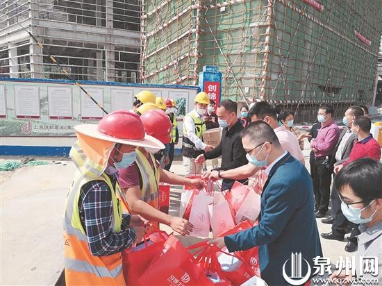 在洛江双阳的市重点项目新宜泉州枢纽物流中心,在惠安东桥的中化泉州石化乙烯及炼油改扩建项目,慰问组一行为一线劳动者送去慰问品、慰问金和节日的祝福,感谢他们为泉州经济社会发展所做出的贡献;在群峰机械生产车间,慰问组听取了企业疫情防控、复工复产、职工之家、技能培训等工作情况。据介绍,目前该企业已全面复工复产,生产发展又重回稳健、高速运营轨道。