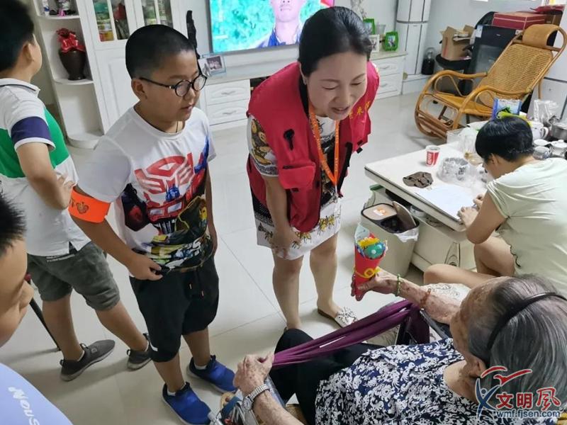 此后,小志愿者便开始接受正规培训。他们的第一个工作就是在社区内宣传垃圾分类知识。将课堂上所学的知识运用到生活中,孩子们兴致勃勃,他们领取垃圾分类宣传单,走进湖里社区的大街小巷,一对一地宣传垃圾分类知识。此外,小志愿者们与社区助老项目进行联动,制作手工纽扣花束作为访问社区高龄老人的慰问品,并同社区助老员一起走街串巷,入户探访高龄老人,亲手为爷爷奶奶们送上手工慰问品。