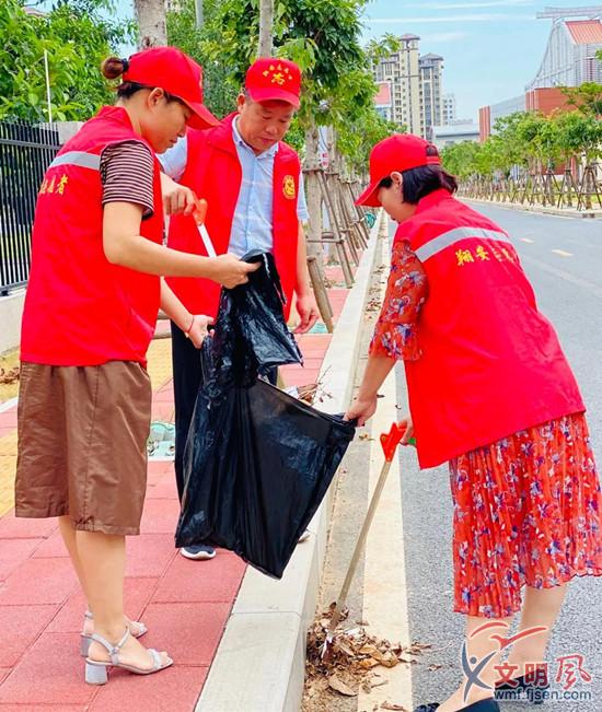 志愿者沿路清理垃圾(翔安区委文明办供图)