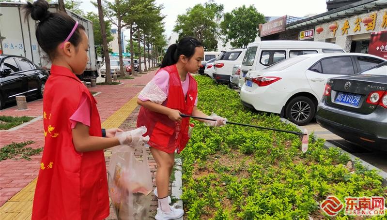 “早上的台风好可怕,我们小区很多树的树枝都被吹断了,树叶落了一地,还吹来了很多垃圾。”小志愿者陈思瑶表示,很开心能帮忙清理这些台风后留下的垃圾。