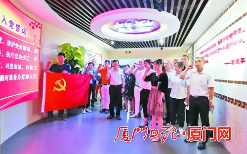 翔安区党员干部参观马塘精神主题馆后,重温入党誓词。(翔安区 提供)