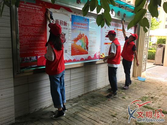 志愿者认真擦洗宣传栏(翔安区委文明办供图)