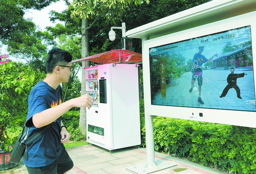 薛岭山公园AR太极,深受市民游客喜爱。湖里区市政园林局供图