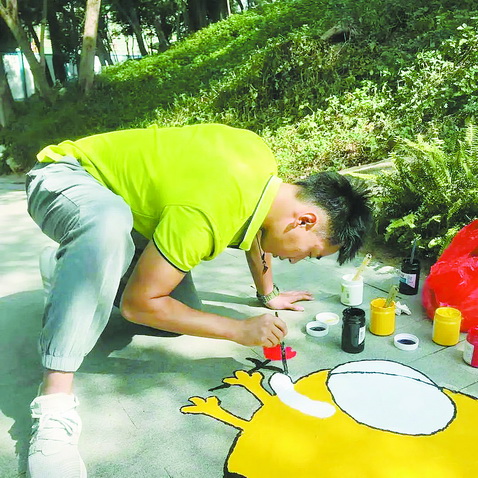 作品虽美丽,作画却不易。为了在凹凸不平的表面上作画,创意小队成员们经常要蹲着、站着画上一整天,又热又累。通过奇思妙想,一个个美好的创意顺利落地,湖里区各公园的井盖、树桩、破损的地面都穿上斑斓的花衣,吸引不少的市民游客驻足拍照。值得一提的是,精美的创意作画让原本存在安全隐患的管道、井盖更加醒目,小孩子见到也舍不得踩,成为公园文明创建提升中的“一步妙招”。