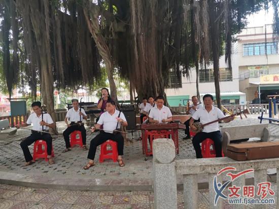 许厝村村民闲来喜欢拿着乐器坐在榕树下来一曲(翔安区委文明办供图)