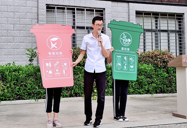 鲜红的领巾系满理想,载着我们扬帆远航。少先队大队委吴琼妍为全体师生宣读“全员参与手拉手,垃圾分类一起走” 倡议书。倡议全校学生积极学习垃圾分类知识,以实际行动对垃圾进行分类,合理有效节约利用资源。