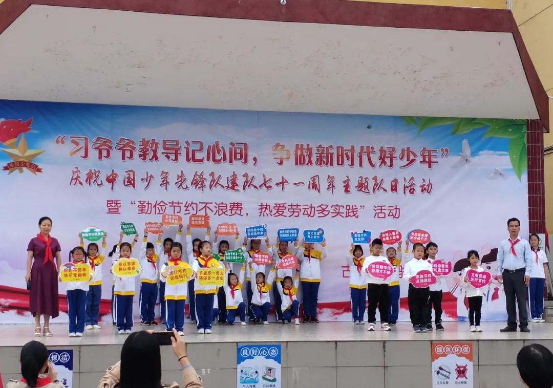古田一小校长带领辅导员、少先队员们通读习近平总书记致中国少年先锋队第八次全国代表大会的贺信全文,少先队员们都认真聆听,用心铭记。活动中,县政府王留一副县长向辛勤耕耘的少先队辅导员们表示敬意和问候,并希望少先队员们要树立远大理想,培养优良品德,勤奋学习,全面发展,快乐成长,把自己锻炼成为敢于追梦、勇于追梦的七彩少年。
