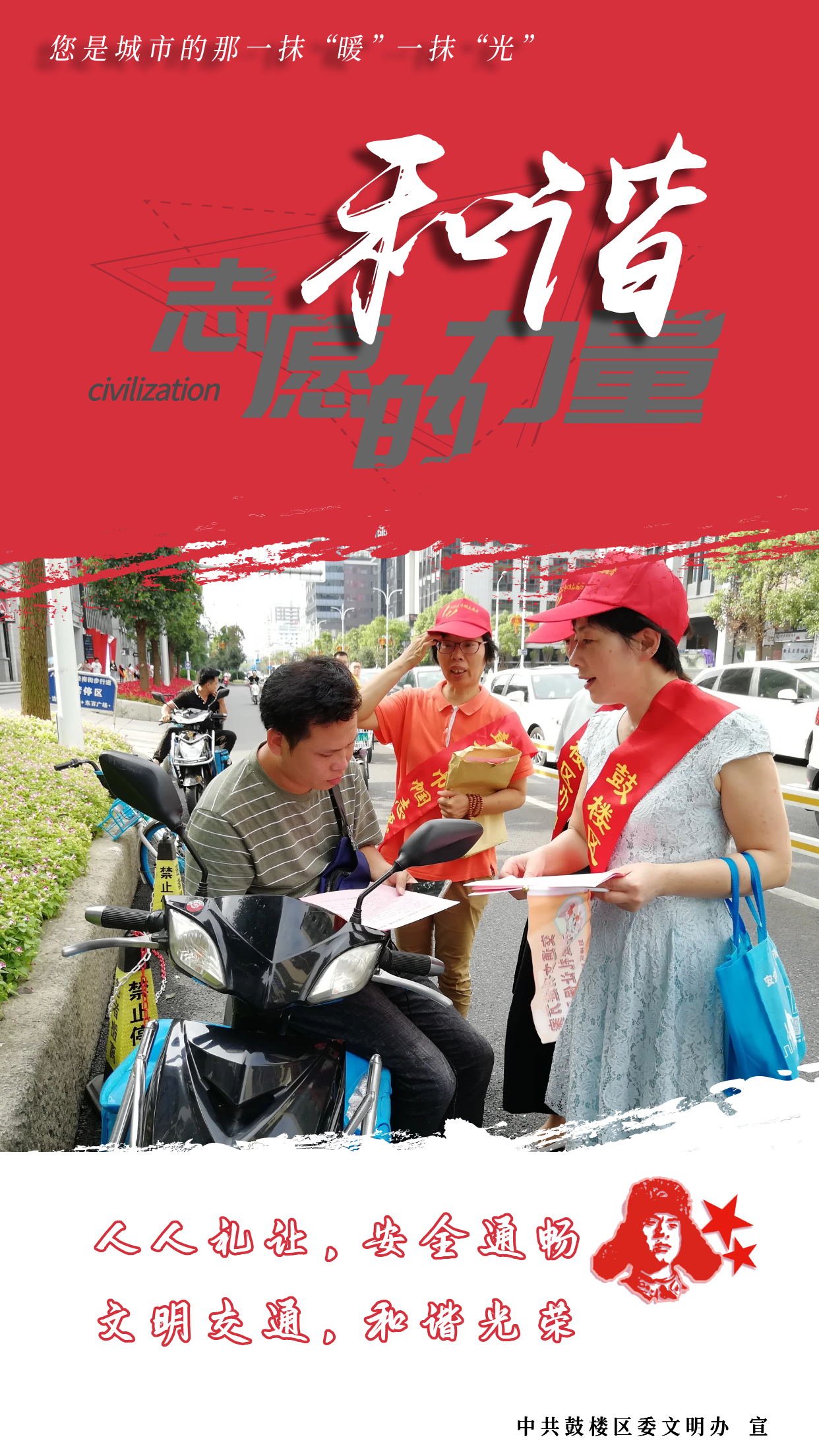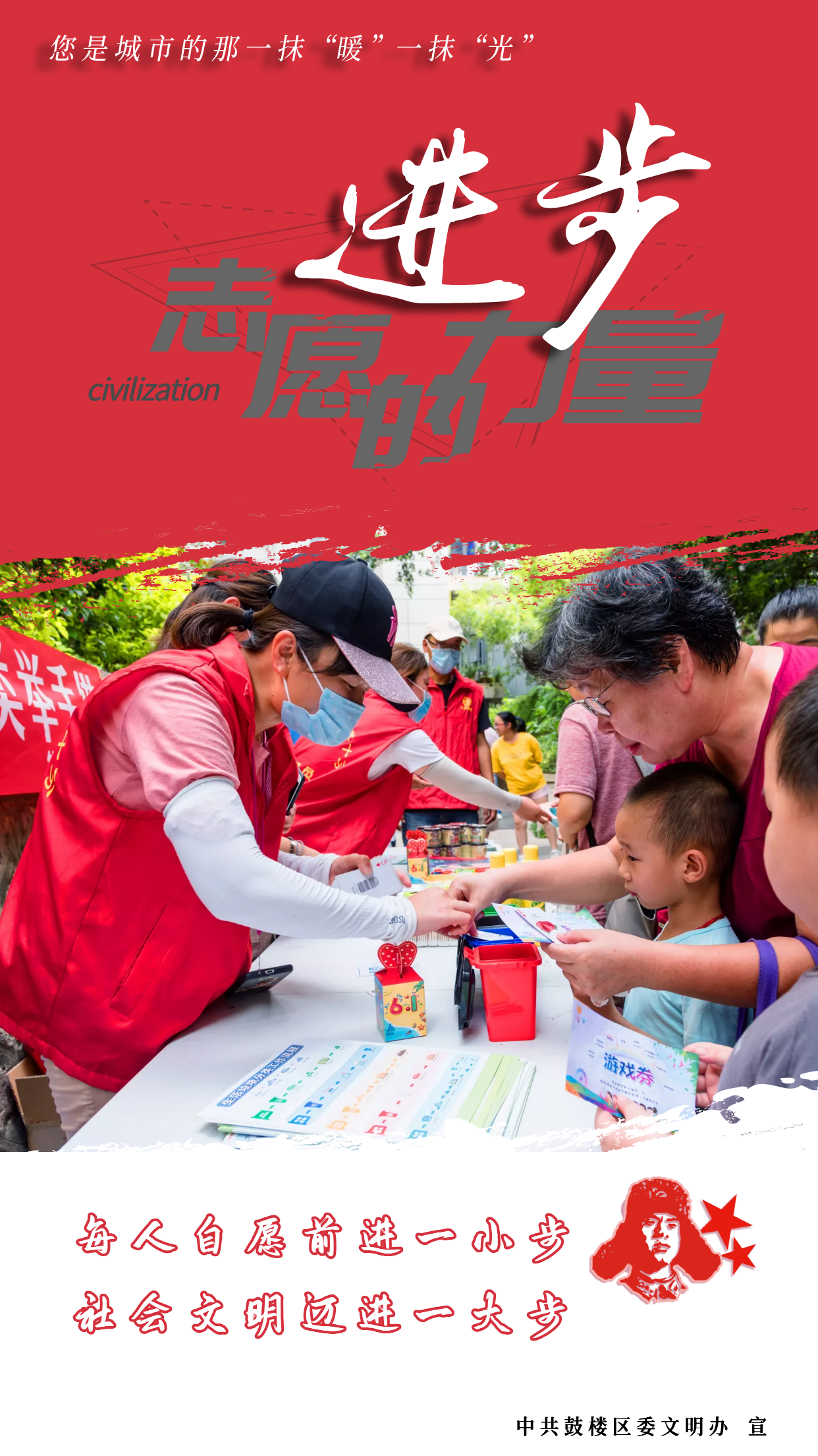 在福州市鼓楼区,广大志愿者、志愿服务组织、志愿服务工作者将“奉献、友爱、互助、进步”的志愿服务精神熔铸于青春生命,积极响应党和人民号召,弘扬和践行社会主义核心价值观,走进街道、走进社区、走进基层,为他人送温暖、为社会作贡献。他们践行志愿服务精神,又为志愿服务注入文明、法治、和谐等新时代精神,充分彰显了理想信念、爱心善意、文明向上、责任担当,成为人民有信仰、国家有力量、民族有希望的生动写照。(中共鼓楼区委文明办报送)