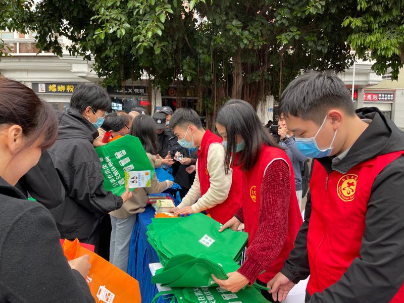 志愿者向市民群众发放文明餐桌宣传手册 台江区委文明办供图