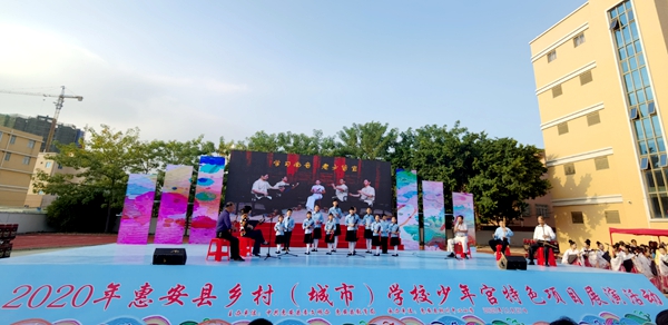 为推进乡村(城市)学校少年宫“一宫一品”特色项目培育,展示创建成果,近日,由惠安县委文明办、县教育局主办的2020年惠安县乡村(城市)学校少年宫项目展演活动在惠安县辋川中心小学举行。来自全县的14所学校少年宫代表队为观众送上了精彩纷呈的项目展示演出。主办单位相关领导、相关学校负责人、辋川中心小学师生代表等观看了演出。