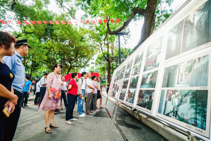 市民群众围观学习福州坊巷历史文化图展。(鼓楼文明办供图)