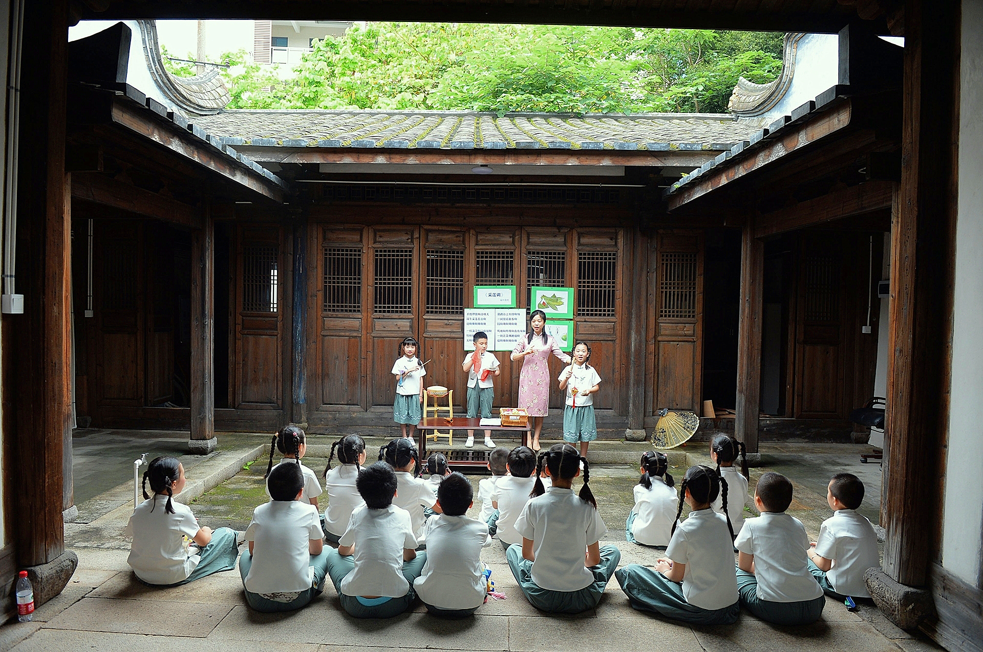 孩子们在历史坊巷深处的百年宅院内,学唱《采莲调》。(鼓楼文明办供图)