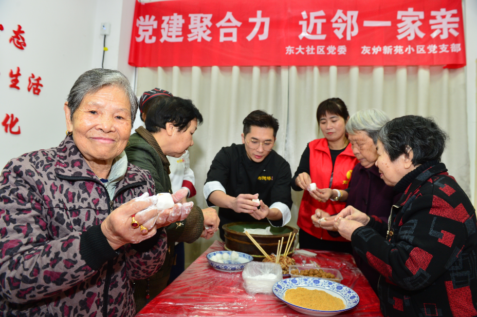 12月21日上午,鼓楼区屏山社区携手共建单位省渔业资源监测中心、邮储银行鼓楼区支行共同举办“情暖冬至 喜迎元旦”——主题游园活动。猜灯谜、煮汤圆、普知识…丰富多样的活动环节吸引了许多居民群众一大早就来到现场,大家根据自己的喜好现场“打卡”,志愿者们为到场居民送上一碗碗热气腾腾的汤圆和豆腐花,并送上节日的祝福。活动现场,充满了欢声笑语,每位参与活动的居民脸上都挂满了笑容,温馨而快乐。