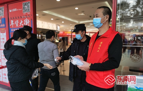 志愿者到商场免费发放口罩。彩燕 供图