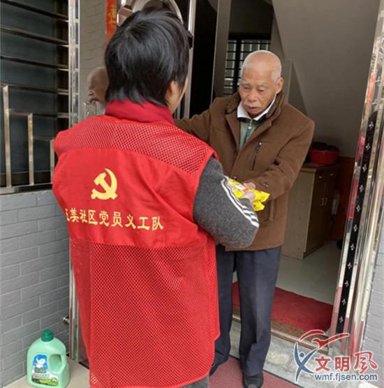 志愿者为老人送去腊八祝福(翔安区委文明办供图)
