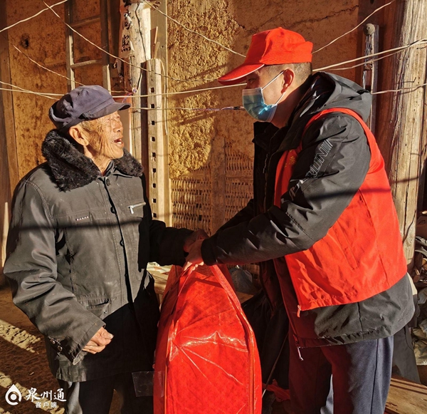 1月9日,为应对寒潮来袭,做好疫情防控工作,德化县葛坑镇新时代文明实践所志愿者们纷纷进村入户开展志愿服务活动,走访低保,留守老人等困难群众,了解他们生活情况,为他们发放暖手袋、棉被件、毛毯等防寒物资。志愿者入户送温暖的同时向群众宣传疫情防控知识,提醒群众春节少串门,少聚集,巩固来之不易的防控成果,确保群众过一个平安健康文明的春节。(泉州晚报记者 陈明华 通讯员 李宏图 郑燕玲 文/图)
