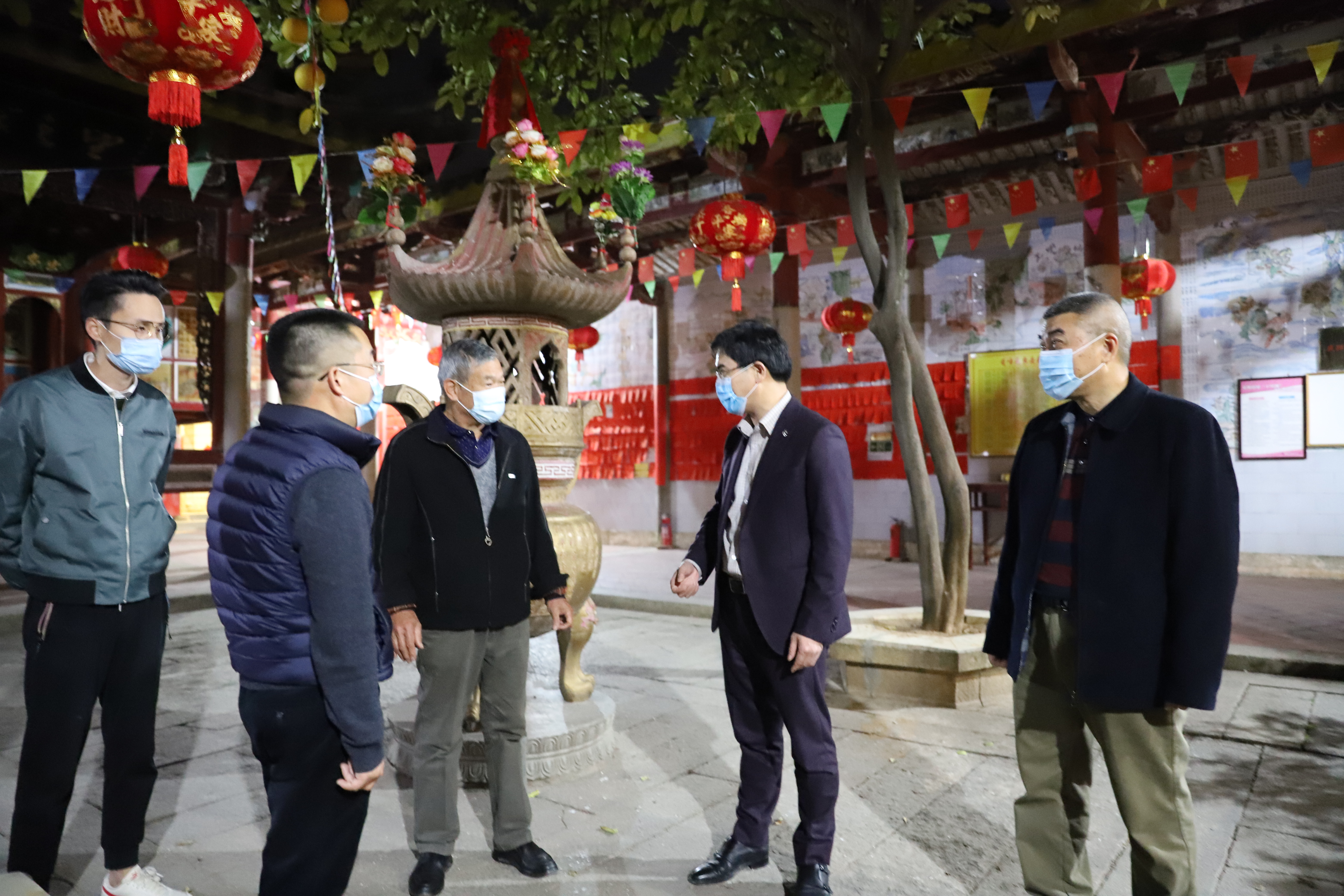 “夜巡人”查看各宫庙关停情况(泉港区峰尾镇供图)