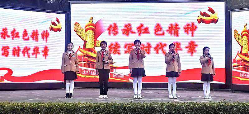 福州市乌山小学开学典礼上,学生朗诵《传承红色精神 续写时代华章》(鼓楼文明办供图)
