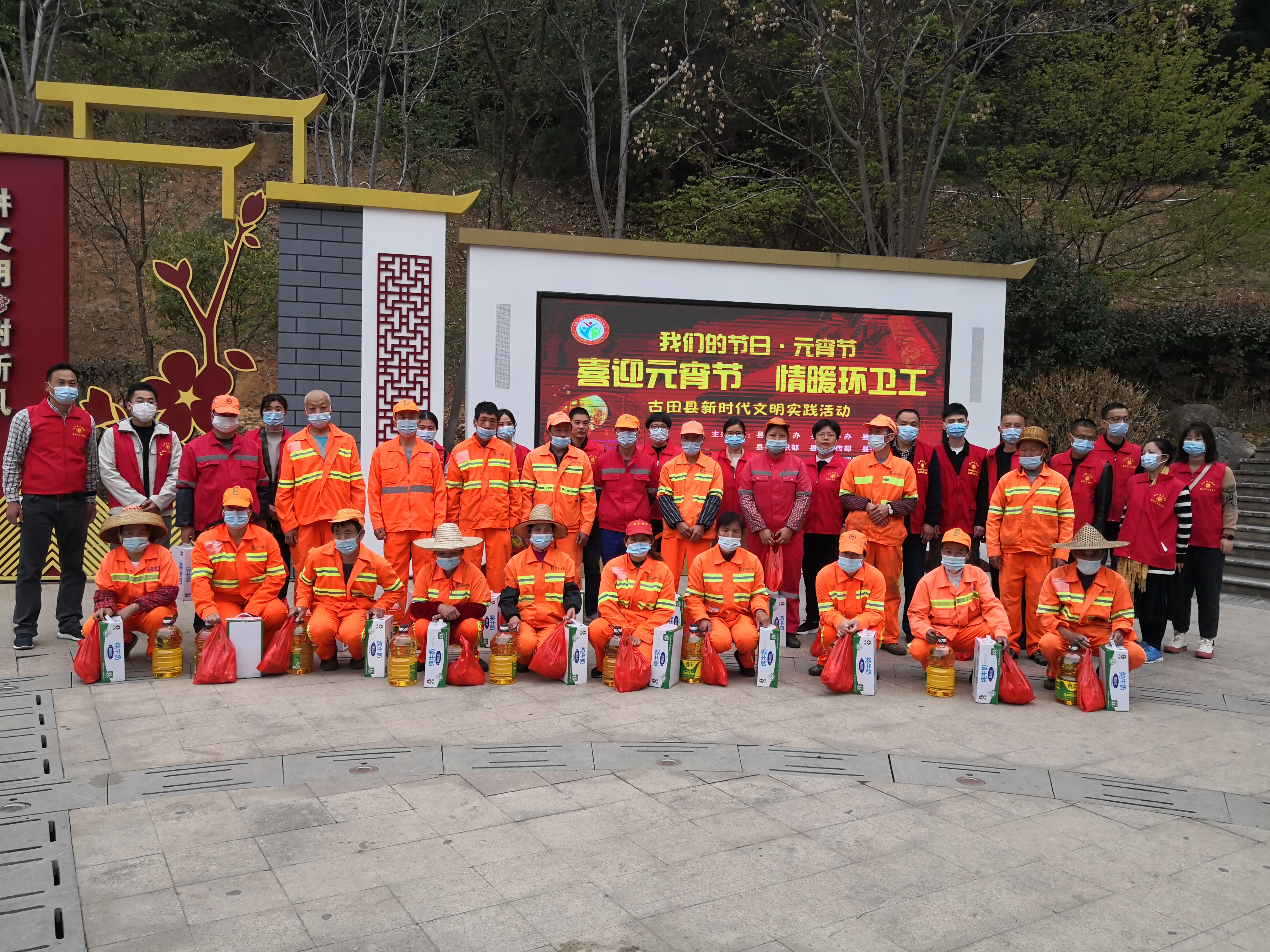 宁德文明网2月26日讯(通讯员 朱寿洋) 2月25日,为营造同欢、同庆、同喜、同乐的佳节氛围,传承弘扬中华民族传统文化,发挥民族传统节日在培育和践行社会主义价值观中的重要作用,激励干群奋发向上。古田县人大办、县政协办、县纪委监委、县委组织部、县委宣传部、县委统战部、县委政法委、县城市管理局等文明单位以“喜迎元宵节,情暖环卫工”为主题开展了新时代文明实践活动。