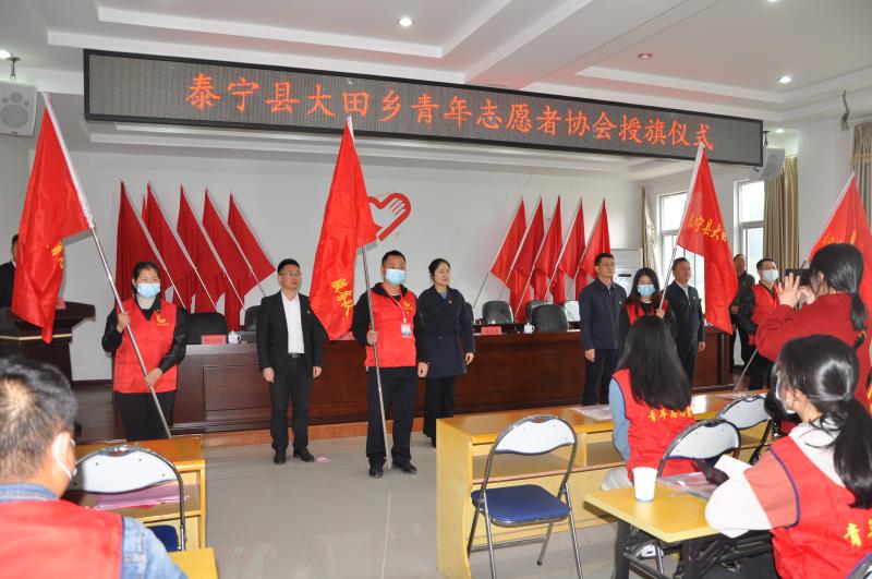 大田乡青年志愿者协会成立授旗仪式正式启动,由福建省青年志愿服务中心主任张忠亮等与会嘉宾分别为大田乡青年志愿者、大田乡机关志愿者服务队、农村志服务队、医务志服务队、教育志愿服务队授旗。