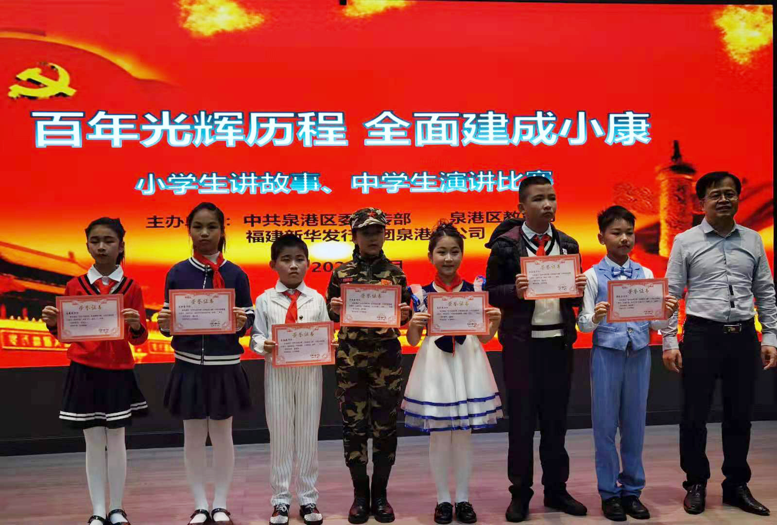 为庆祝中国共产党成立100周年,宣传展示全面建成小康社会、实现第一个百年奋斗目标的伟大成就,落实立德树人根本任务,推进未成人“扣好人生第一粒扣子”主题活动深入开展,今年3月,泉港区委宣传部、区教育局、新华发行集团泉港分公司组织开展“百年光辉历程 全面建成小康”第28届全国青少年爱国主义读书教育活动。经过各中小学初赛,庄紫嫣等14位小学生参加区级讲故事比赛,郑涵等14位中学生参加区级演讲比赛。