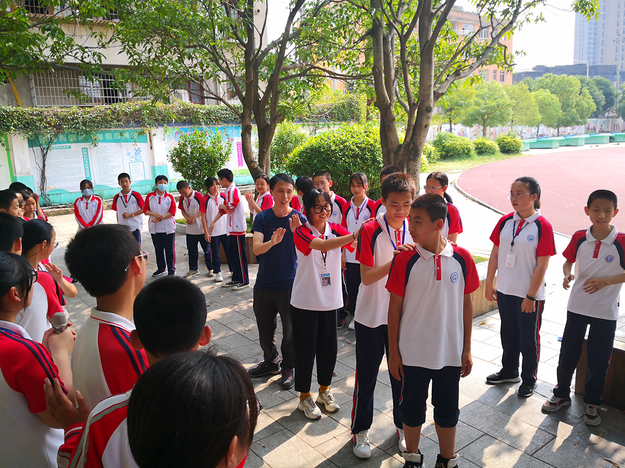 活动由国家三级心理咨询师、涵江区校外未成年人心理健康辅导站志愿者张金灿老师主持。张老师根据青春期学生对异性既好奇又羞涩的年龄特点,通过每人与五位异性同学互相握手打招呼,消除彼此之间的拘束感,“破冰”成功。在热身活动环节,为了考验同学们的默契与团体凝聚力,张老师采用“激情节拍”的形式,按顺序说出“我们是最棒的团队”这八个字并完成指定动作。在老师的引导下,大家从一开始的杂乱无序到后面的整齐划一用了十分钟的时间。