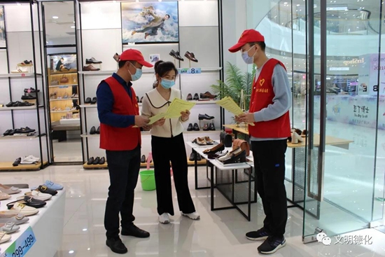 志愿者们走进德化万达广场及其内部商铺店面,向群众宣传了移风易俗相关知识并分发了移风易俗宣传资料,倡导群众强化主人翁责任,积极改变传统观念,破陈规、除陋习,倡文明、树新风,为移风易俗深入开展助力加持。