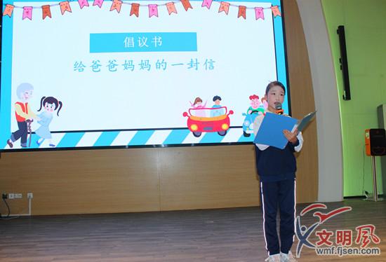 “爸爸,妈妈,希望您们看到这封信后,去劝诫邻居、朋友,要注意交通规则……”活动现场,来自翔安第二实验小学的学生代表上台宣读了《给爸爸妈妈的一封信》,字里行间都提醒着要遵守交规,珍爱生命。
