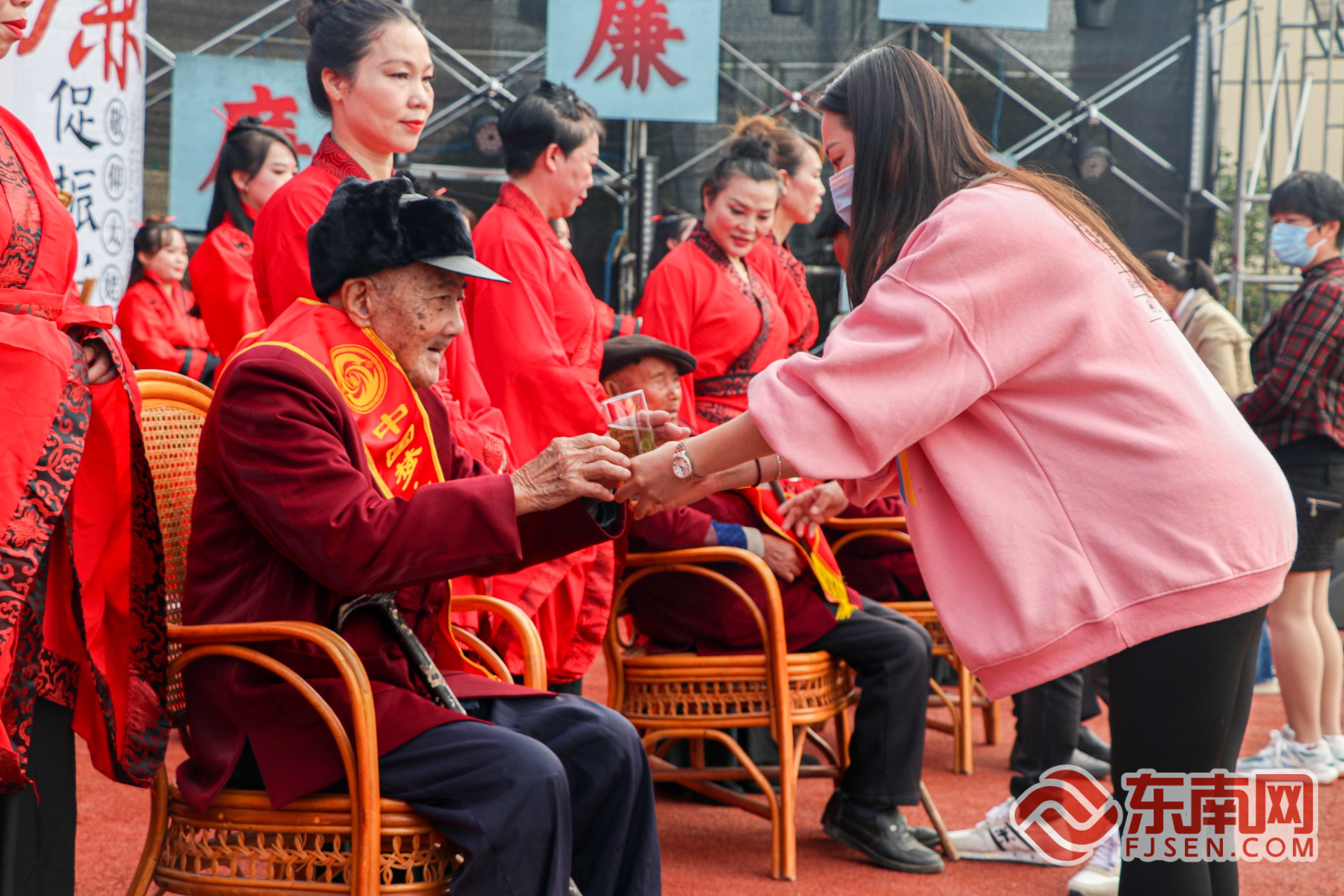 百名老人同吃“孝宴”。东南网记者 叶伏国摄