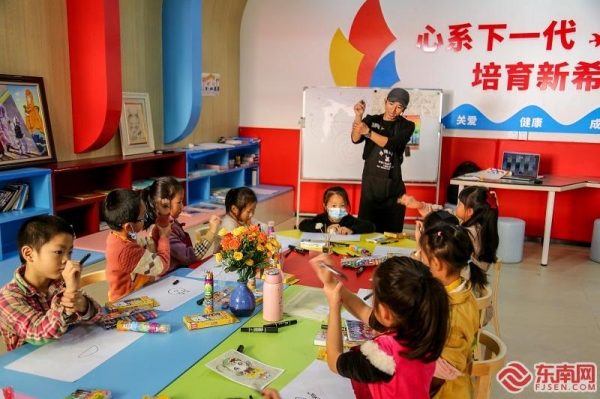 东南网莆田11月23日讯(通讯员 许双萍 文/图)11月21日,“幼有所育”公益课堂在莆田湄洲岛宫下村“党建+”邻里中心儿童活动中心里正式开课,小朋友们在老师的指导下认真地进行绘画和书法练习。