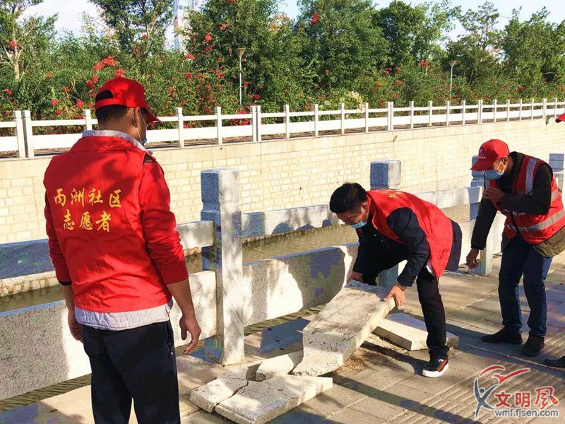 志愿者对文明创建的难点问题进行清理。(同安区委文明办 供图)