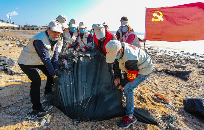 锦尚红十字会志愿者开展净滩活动 石狮日报供图