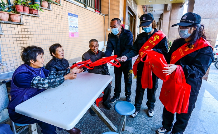 图为农民义务110巡逻队给村民送上“平安大礼包” 石狮日报供图