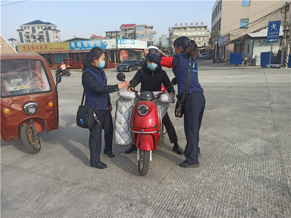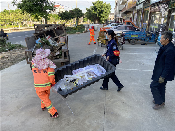 除了环境卫生,交通文明也是创城工作的重点。“您好,这个地方是不能停车的,麻烦挪一下。”创城期间,网格员变身“劝导员”,对行人闯红灯、乱穿马路,无牌摩托车和驾乘不戴头盔、车辆乱停乱放等各类交通违法行为进行劝导;同时,配合镇村工作人员及城管对游商小贩走街串巷、沿街摆摊设点、违规设置占道店面招牌等不文明现象进行现场整改。