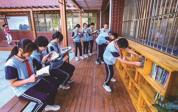 石狮三中附小学生在“阳光书廊”畅游书海 石狮日报供图