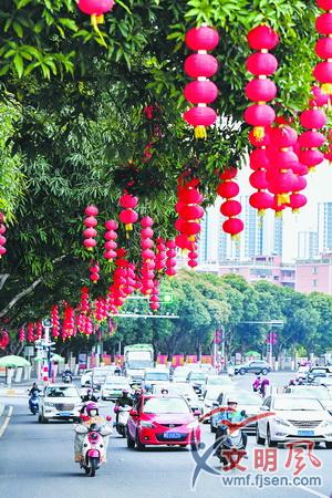 同安区把过大年和“福”文化宣传结合起来,共设置8条“福”文化主题街道(道路),132面“福”文化广告牌,37处“福”文化景观小品(含花卉景观),营造安定和谐、欢乐祥和的节日氛围,让银城福气满满。