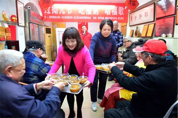 26日,台江区金斗社区党委携手市疾病预防控制中心、福州语歌曲协会、市防艾艺术团等共建单位举办了邻里守望共“防艾”·携手共建庆佳节暨第三届社区拗九节活动。当天,福州音乐人赖董芳等本土歌手以及金斗社区金海艺术团志愿服务队为大家带来了福州语歌曲演唱、古语朗诵等精彩的文艺节目。在欢乐温馨的氛围中,志愿者们将一碗碗热气腾腾的拗九粥送到老人手中。