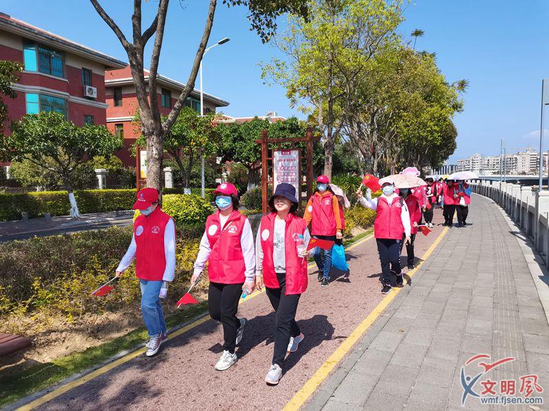 巾帼健步行,在锻炼身体的同时,一路赏花观景。(同安区妇联供图)