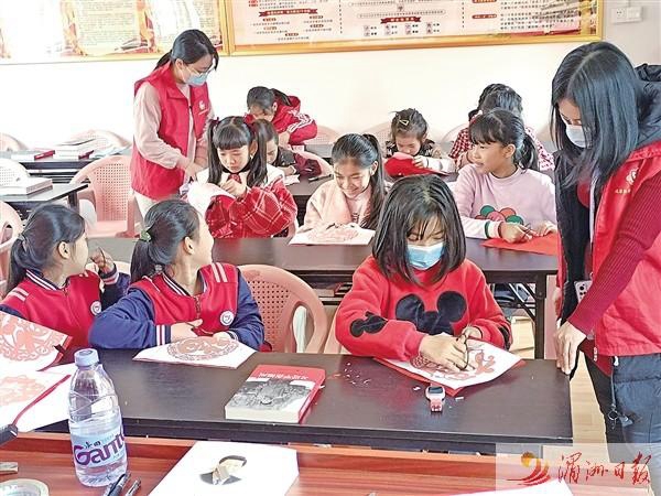忠门镇秀前村村部,未成年人参与体验剪纸技艺。 陈可欣供图