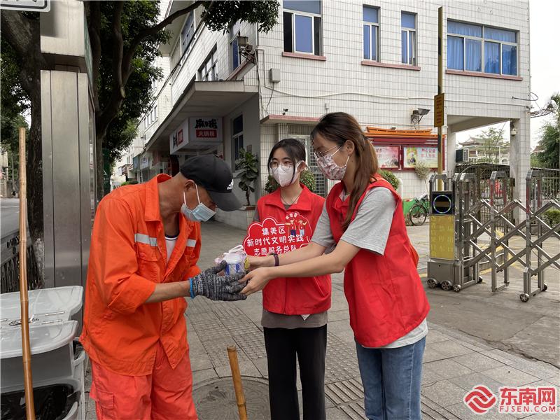 青年志愿者为环卫工人送上暖心早餐(集美·诚毅志愿者联盟供图)
