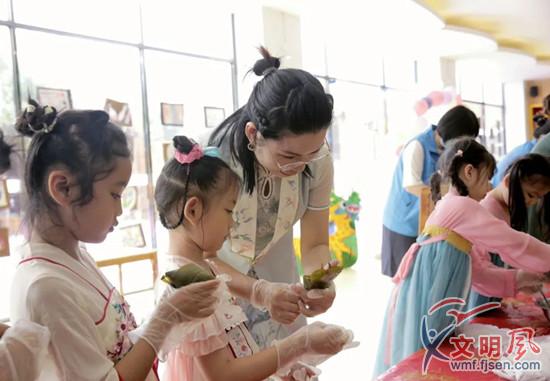 文明风6月2日讯(夏菁 童心悦)6月1日上午,“迎端午、庆六一”传承中华传统文化爱心活动在厦门市翔安区慈恩幼儿园举办。两岸青年和小朋友们齐聚一堂,共同感受两岸同源的中华民族传统文化。