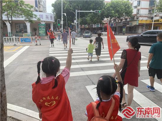 小志愿者根据红绿灯指挥交通(林文彬 摄)