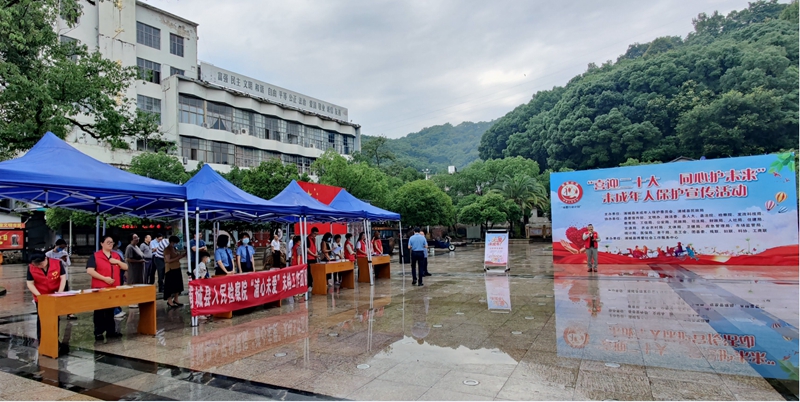 文明风6月22日讯 为深入宣传贯彻《中华人民共和国未成年人保护法》,提高未成年人保护意识,保障未成年人合法权益,6月22日上午,浦城县未成年人保护委员会成员单位在浦城县方志敏广场开展“喜迎二十大,同心护未来”为主题的现场宣传活动。