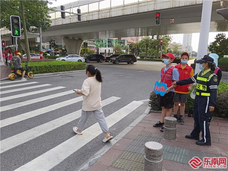 文明风7月20日讯(罗莲)为进一步倡导辖区居民自觉遵守交通规则,养成良好的文明出行习惯,日前,在厦门市集美区宁海社区党委、居委会的支持下,宁海社区新时代文明实践站在万科里交通路口开展“文明出行 你我共建”文明值岗志愿服务活动。
