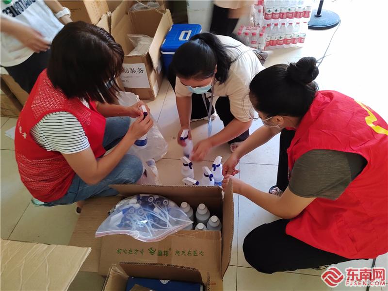 孙厝社区工作者们在清点防疫物资(侨英街道新时代文明实践所供图)