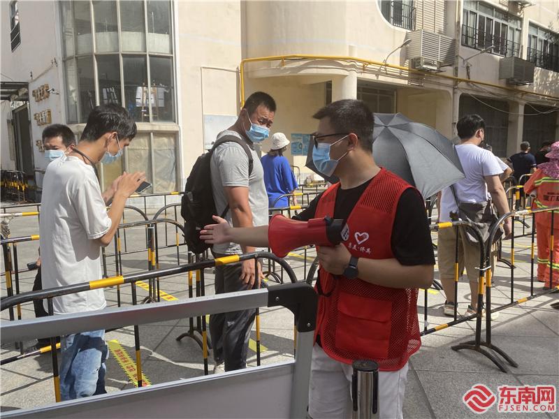 凤林美社区志愿者在维持采样点秩序(侨英街道新时代文明实践所供图)