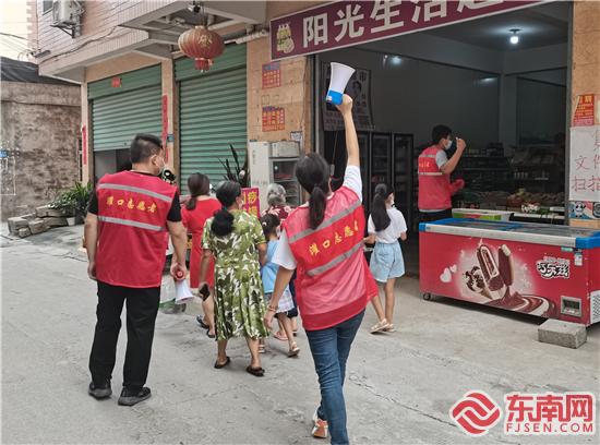 志愿者走街串巷提醒居民及时做核酸。(深青村新时代文明实践站供图)