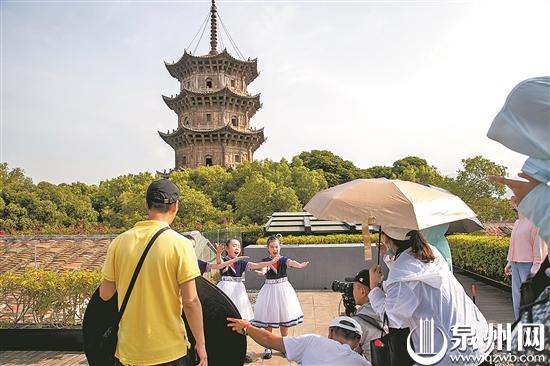 记者了解到,经过对接联系、人员选拔、节目编制、现场排练、前期录音等细致准备, 7月15日至18日,摄制组在泉州进行了为期四天的取景拍摄。泉州市青少年宫侨乡少儿艺术团合唱团学员在老师的带领下,先后前往崇武古城、泉州五中、清源山老君岩、中国闽台缘博物馆、泉州府文庙、西街、海上丝绸之路艺术公园等地开展拍摄活动,孩子们的甜美笑容、专业歌声和泉州的碧海青山、红砖白瓦相映,勾绘出一幅幅蓬勃朝气与悠久历史相迸发、优雅艺术与丰富文化相交融的绝美画面。