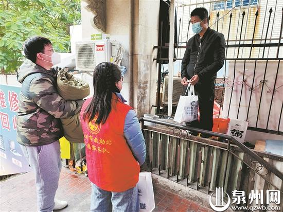 前阵子阴雨绵绵,这两天气温骤降,市民在家里都能感受到寒意。接连几日,泉州市救助管理站工作人员和海西社工组成的外展小队,带着棉被、棉衣、面包等物资,每日在中心市区的温陵路、关帝庙、开元寺、打锡街等流浪乞讨人员容易集中活动和露宿地段,仔细摸排巡查,及时为需要救助人员提供精准服务和切实可行的救助方案。