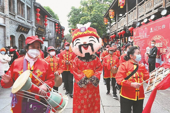 26日,在福州三坊七巷,“正月初五迎财神”民俗巡游队伍在巡游。林善传 摄